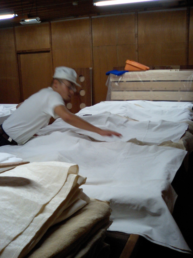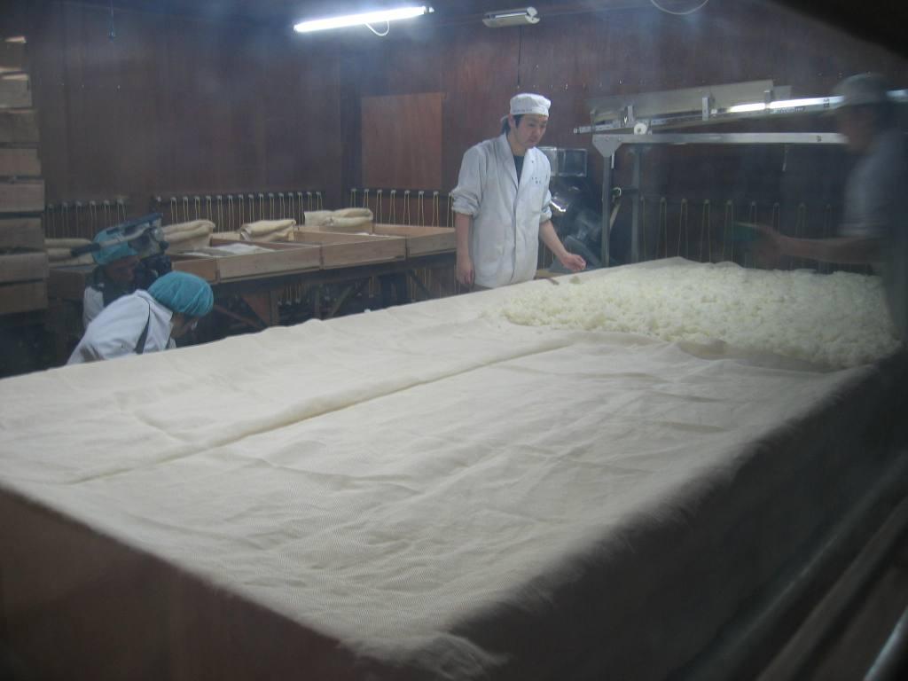 風をあてて無理矢理冷やすのではなく、蒸したお米を広げて、自然に冷ますのです。