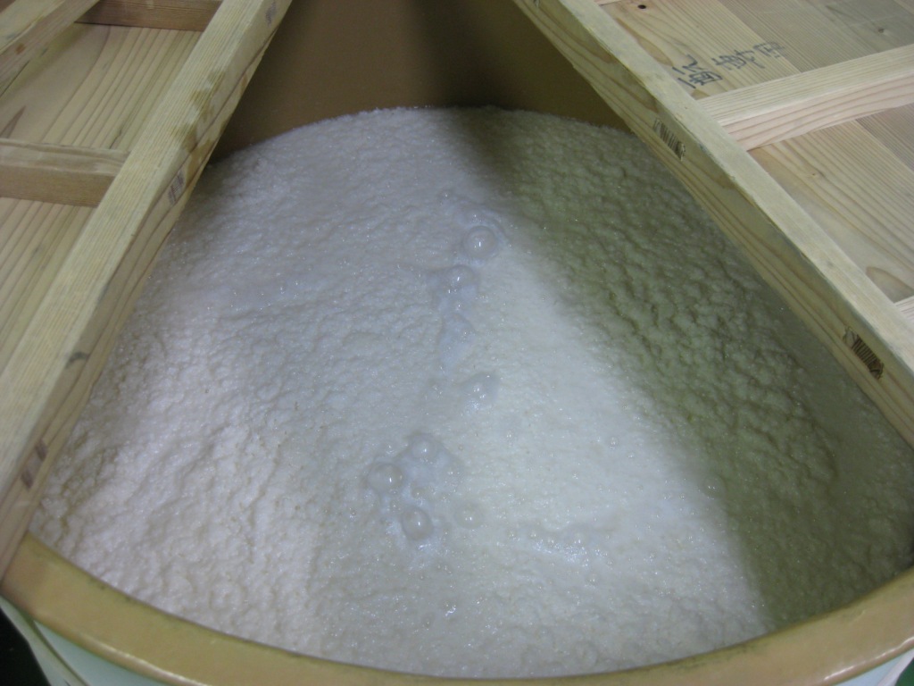 1日目は麹菌をまいた蒸米をひとまとめにして、1日寝かしちょきます。