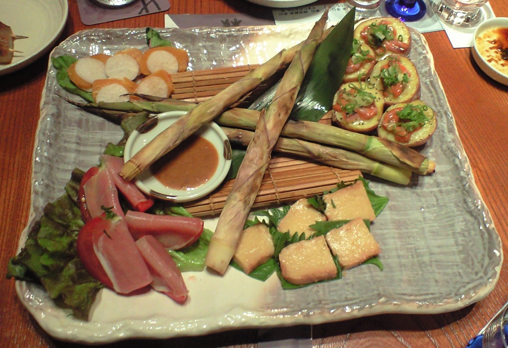 山うに豆腐、徳谷トマト生ハム、姫筍焼、