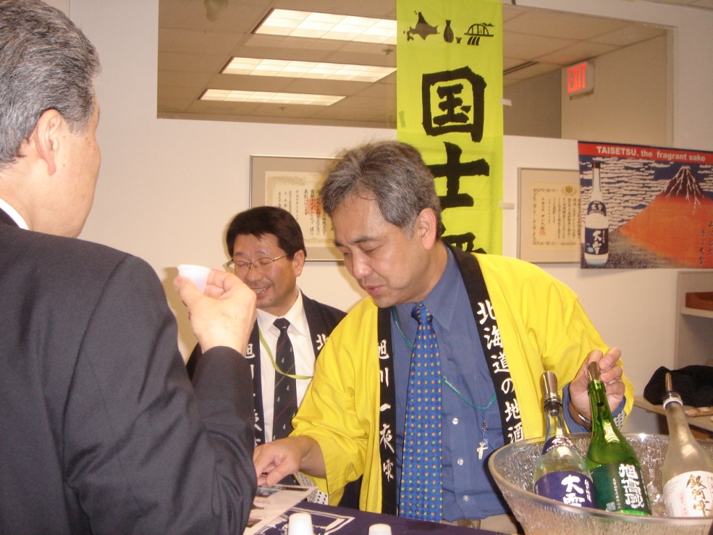こちらが天鷹さんと須藤本家さんのブースを手伝う(日本酒輸出協会会長)松崎晴雄先生