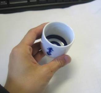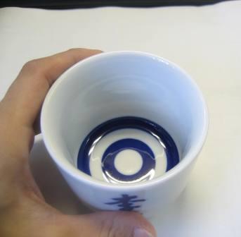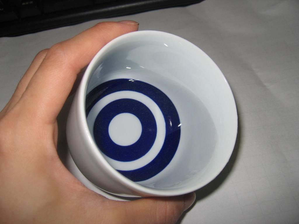 蛇の目のある猪口に酒を入れ、写真のように斜めにします。
