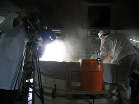 蒸米が蒸しあがるところと撮影されたり・・・ ↓