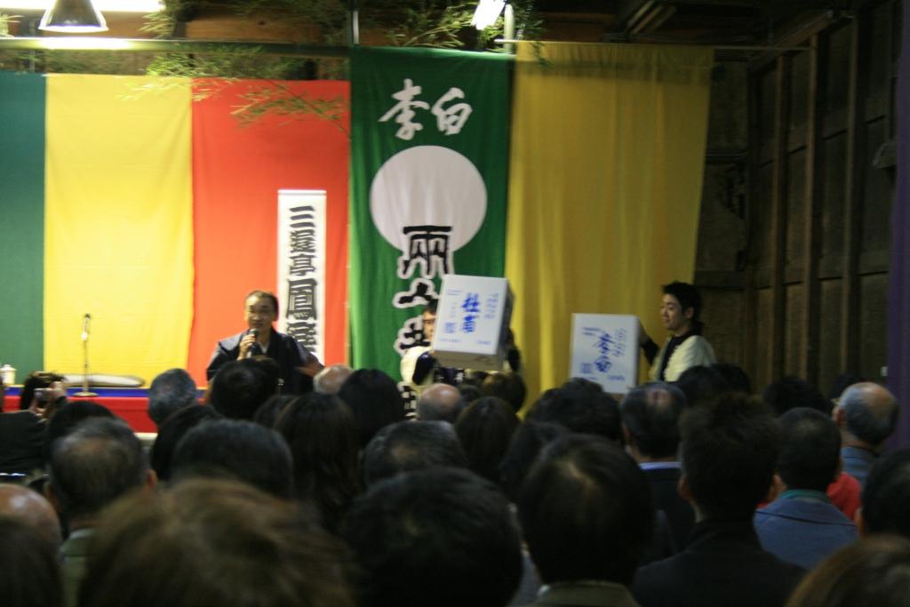 師匠の高座が終ると、李白酒造社員による 「 李白音頭 」